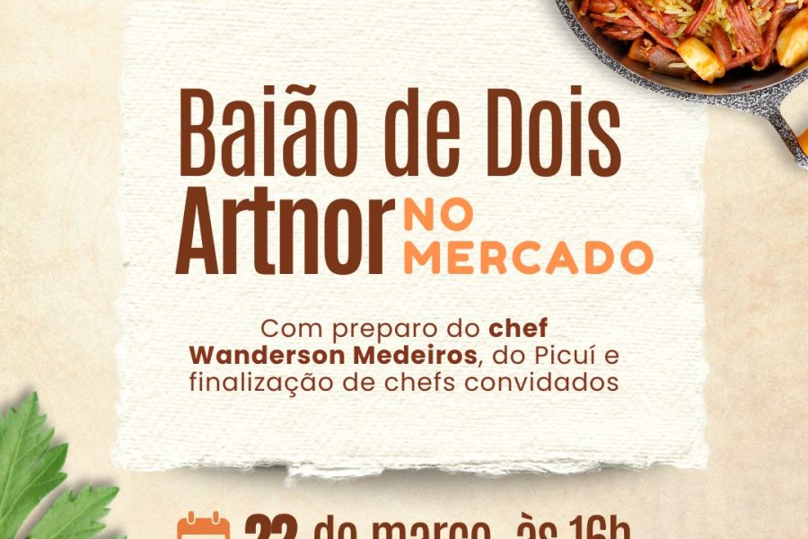O evento marca o encerramento do Festival Gastronômico Artnor 2026 e convida o público para uma experiência coletiva em torno de um dos pratos mais simbólicos da culinária nordestina: o baião de dois.